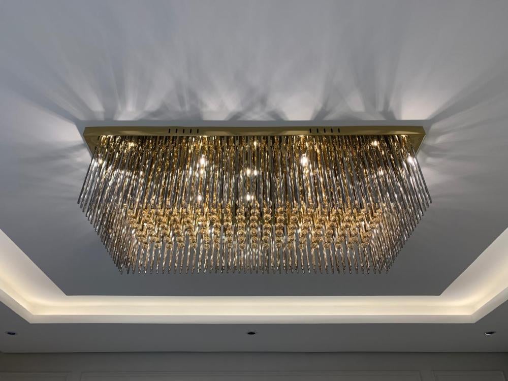 ثريا لاصق مستطيل او مربع مع تعليقات رمادي مع كريستال حبوب